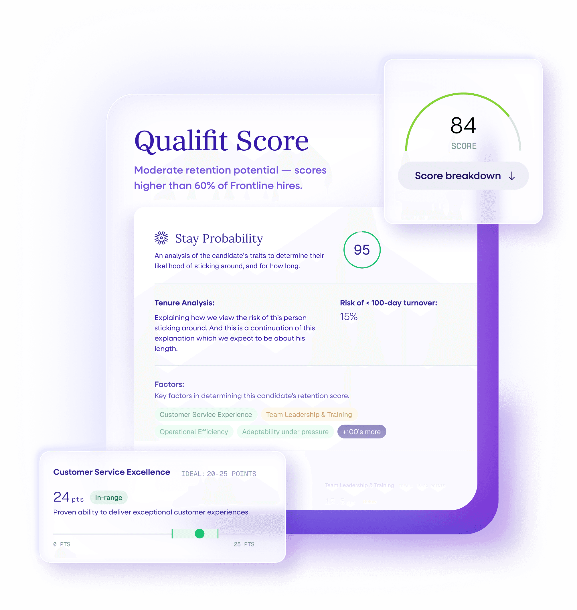 Instantly evaluate every applicant and current employee against your success profile to assess who is most likely to succeed fairly and consistently at scale.