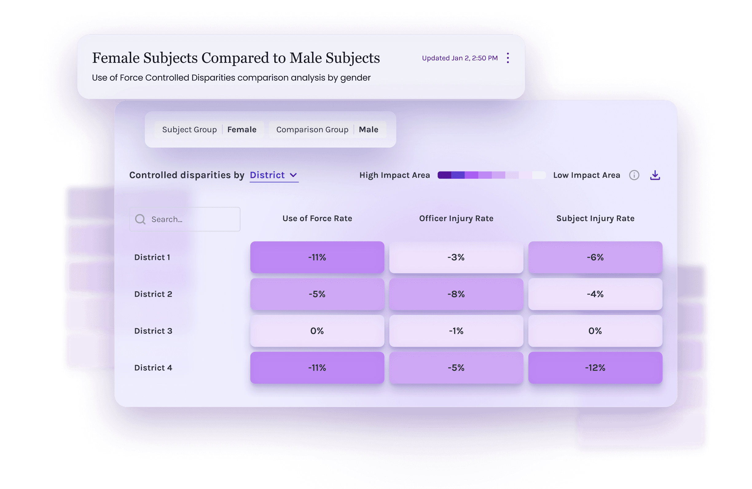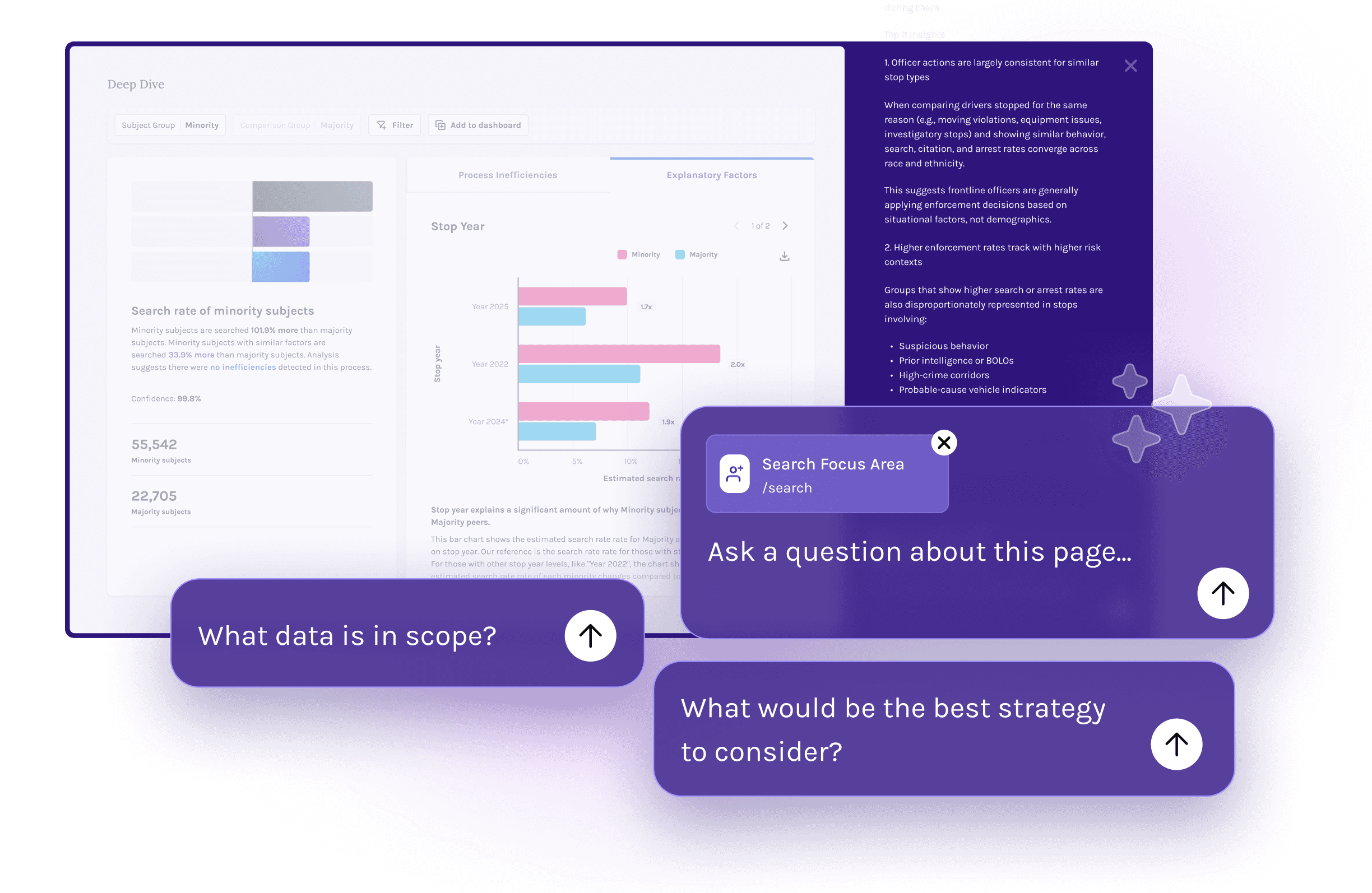 We revealed a customizable overview of outcomes and controlled disparities across entire organizations, turning complex metrics into visual stories.